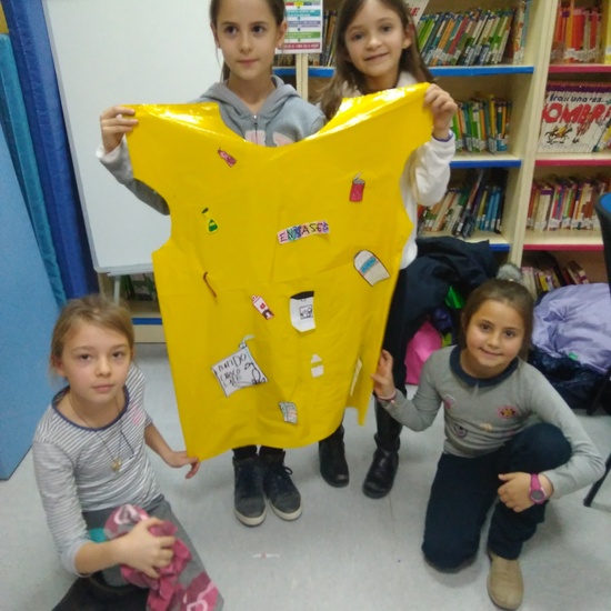 Este año vamos a participar en una acción junto con otros colegios y excuelas infantiles. Acudiremos al mercado de Fuencarral y hablaremos con comerciantes y clientes sobre el reciclaje de basuras. Para ello hemos preparado unos disfraces chulísimos de los colores de algunas de las papeleras que tenemos en casa y los residuos que deberíaos echar en ellas. Os iremos contando más sobre esta actividad...